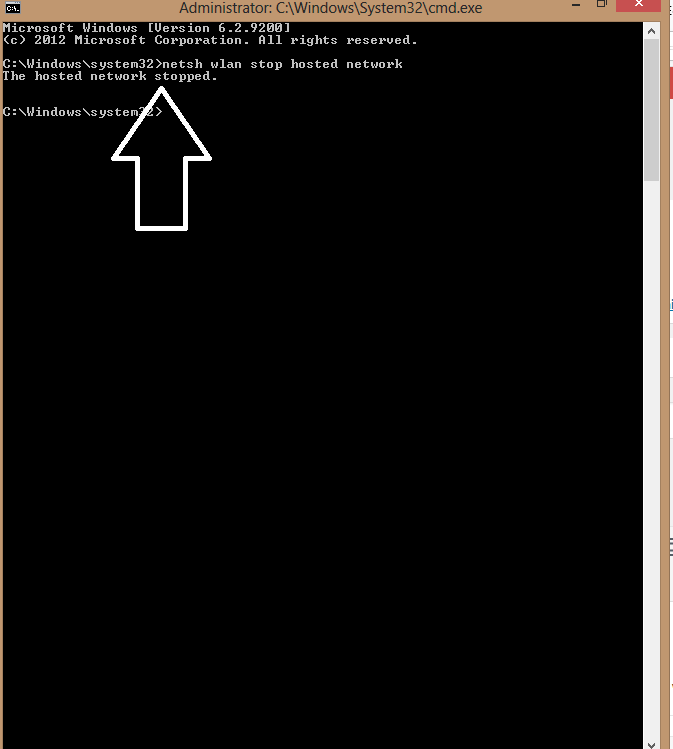 Type “netsh wlan stop hostednetwork” and hit enter.